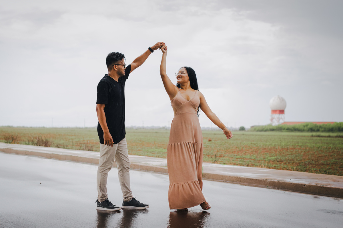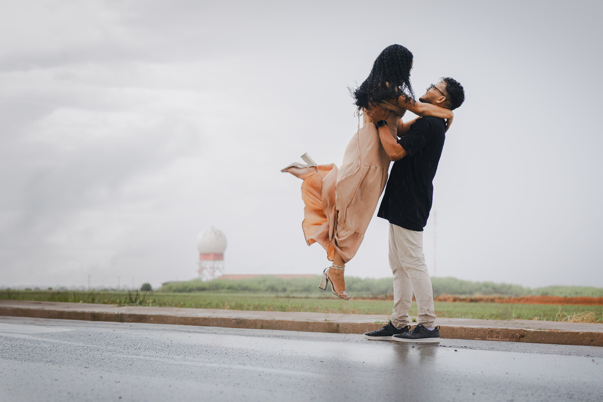 Quando a chuva deu uma trégua, fomos para o aeroporto finalizar nosso ensaio, os noivos tinham referencias de fotos na chuva então não pensamos duas vezes para começar a clicar com o dia chuvoso e nublado.