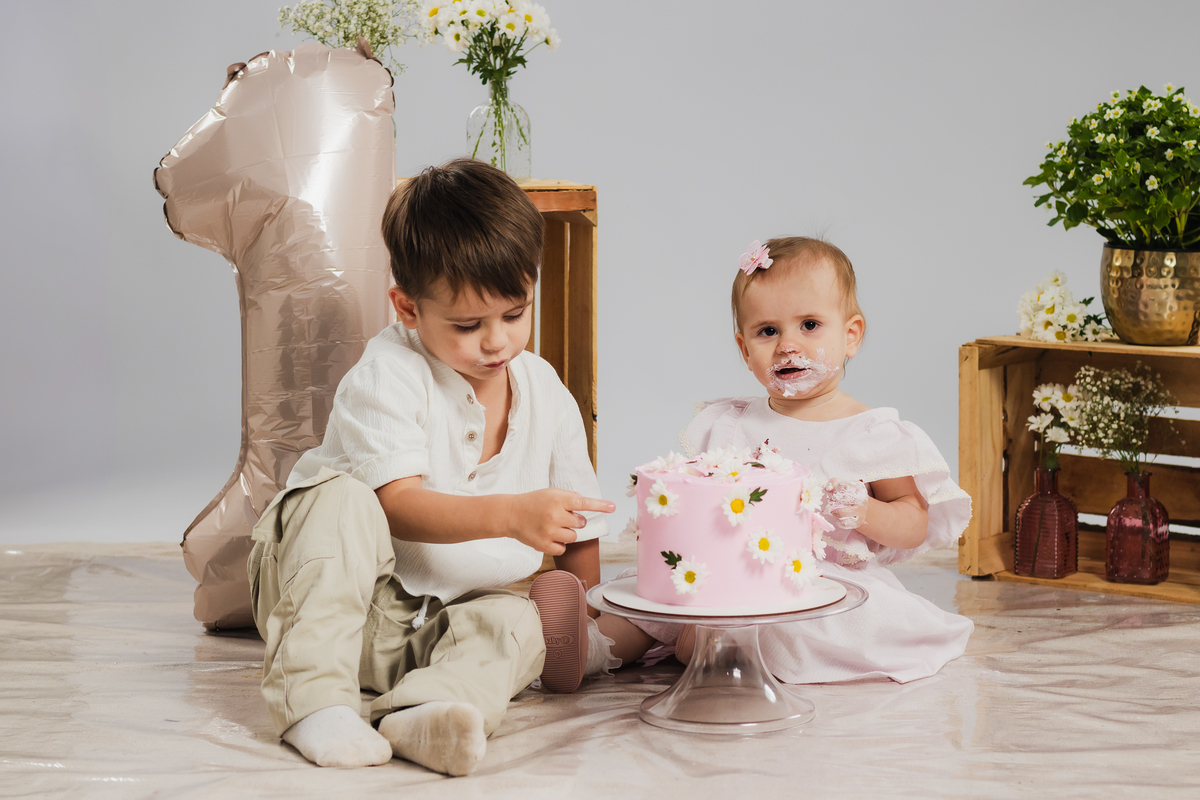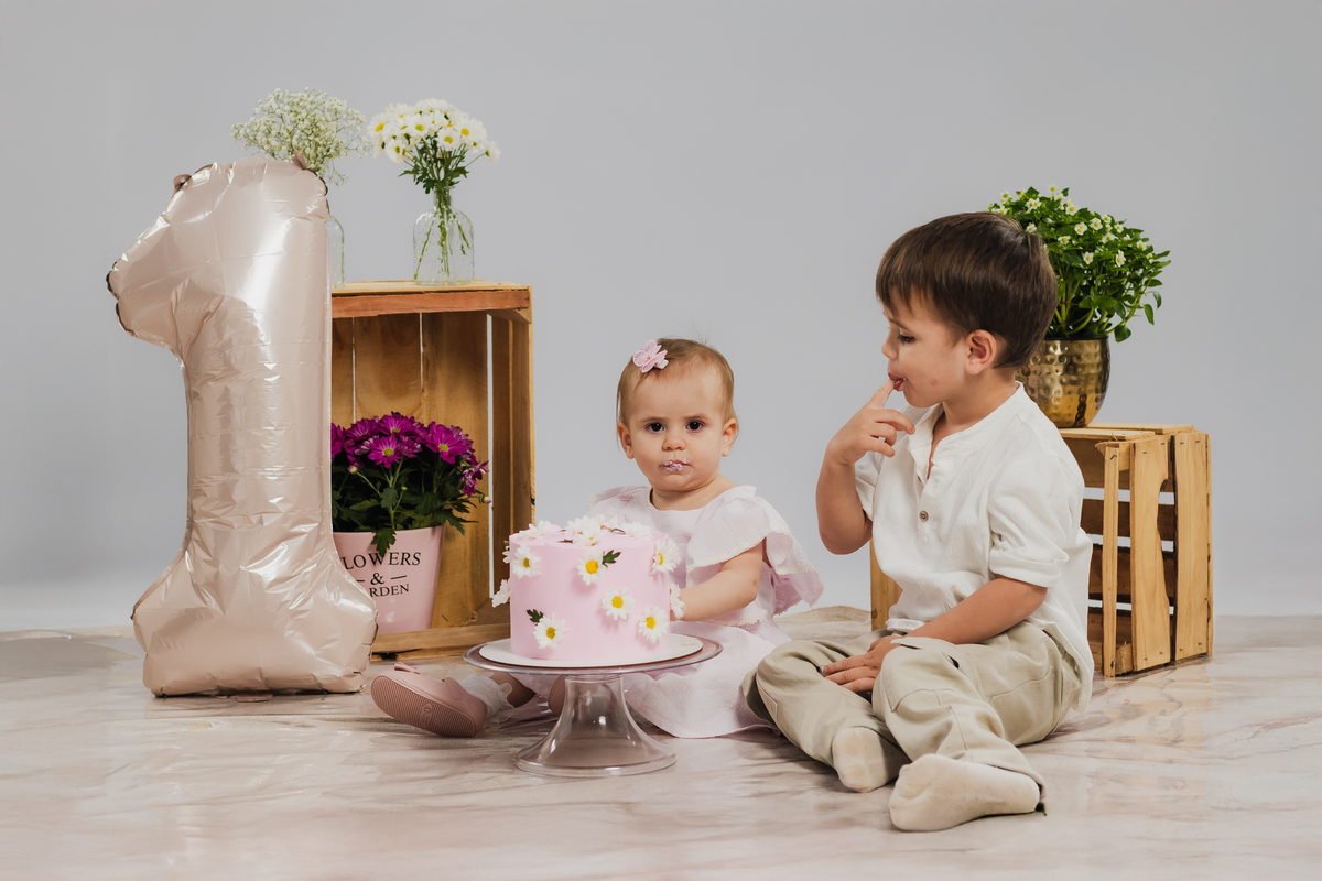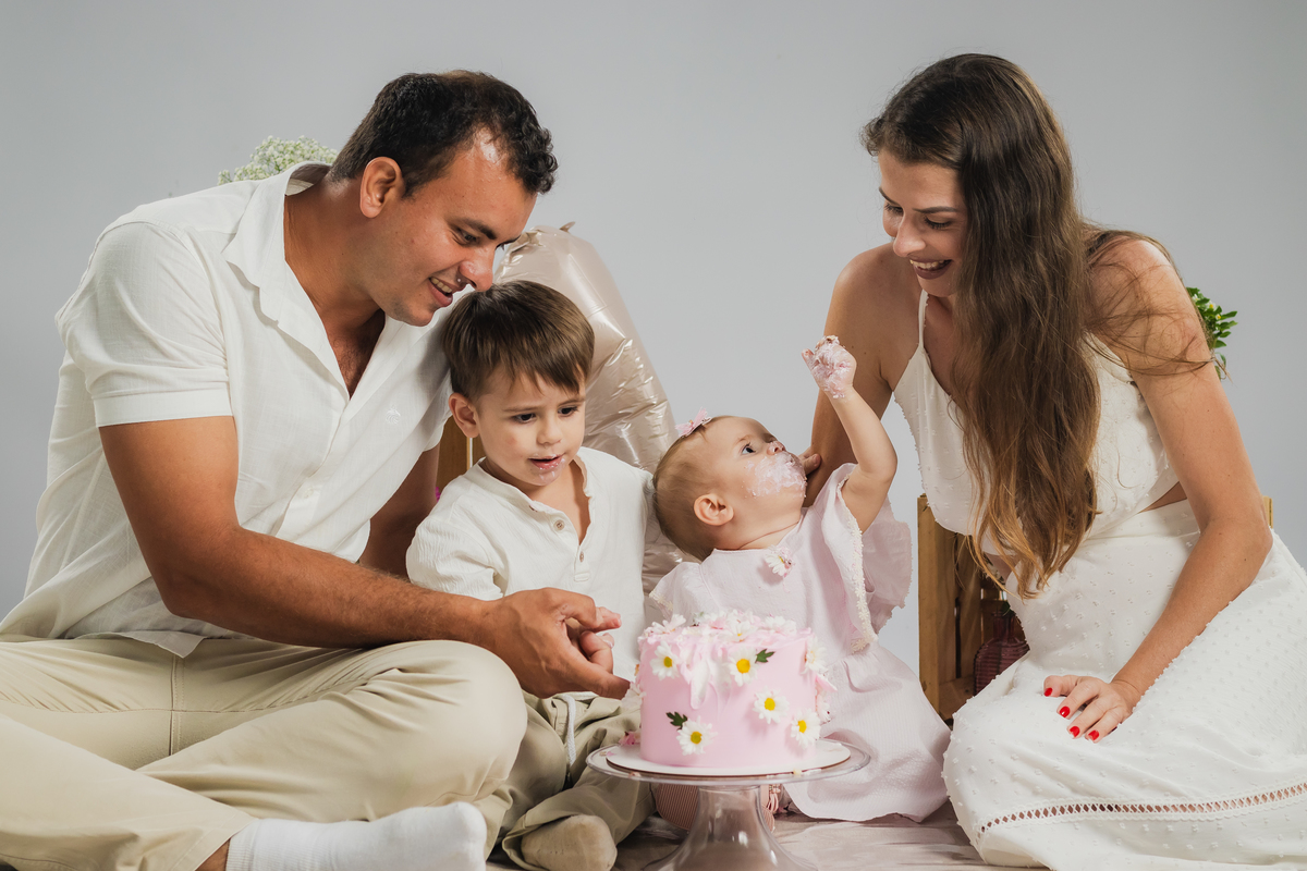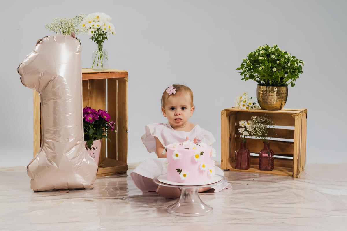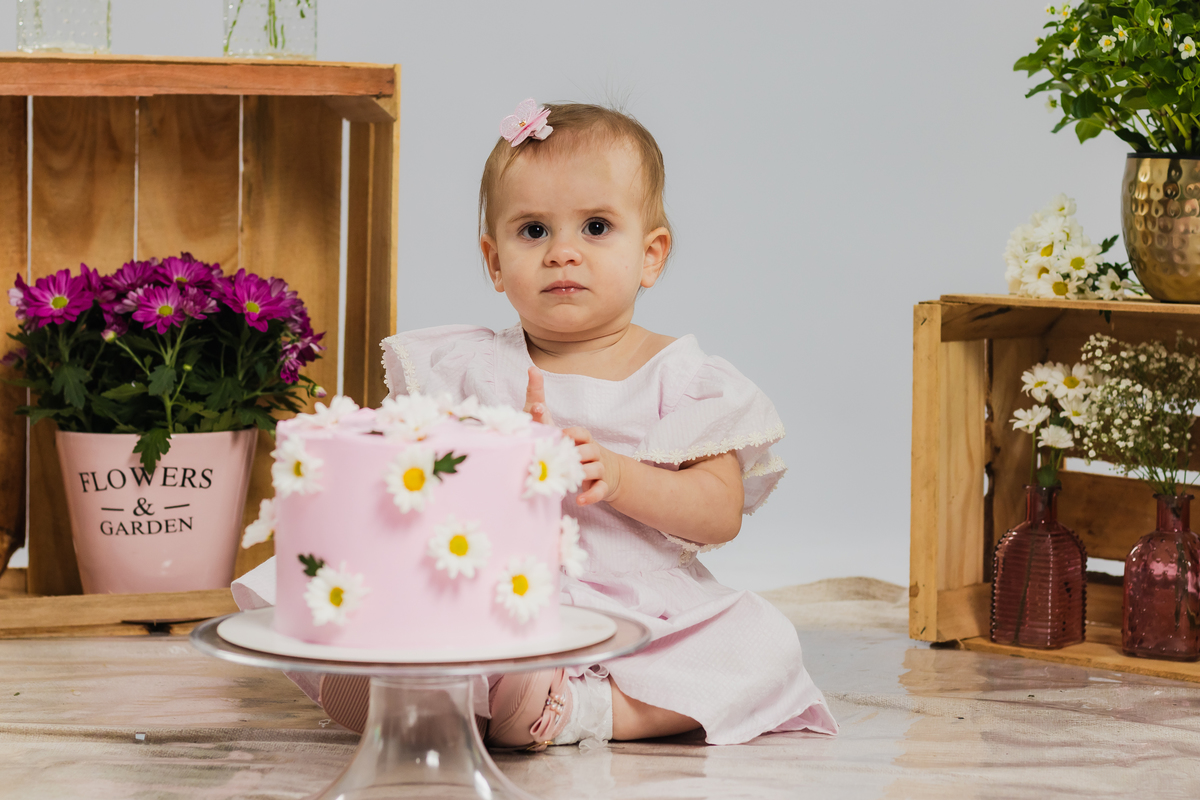 O primeiro aninho da Ana teve muitas flores, bolo e diversão.