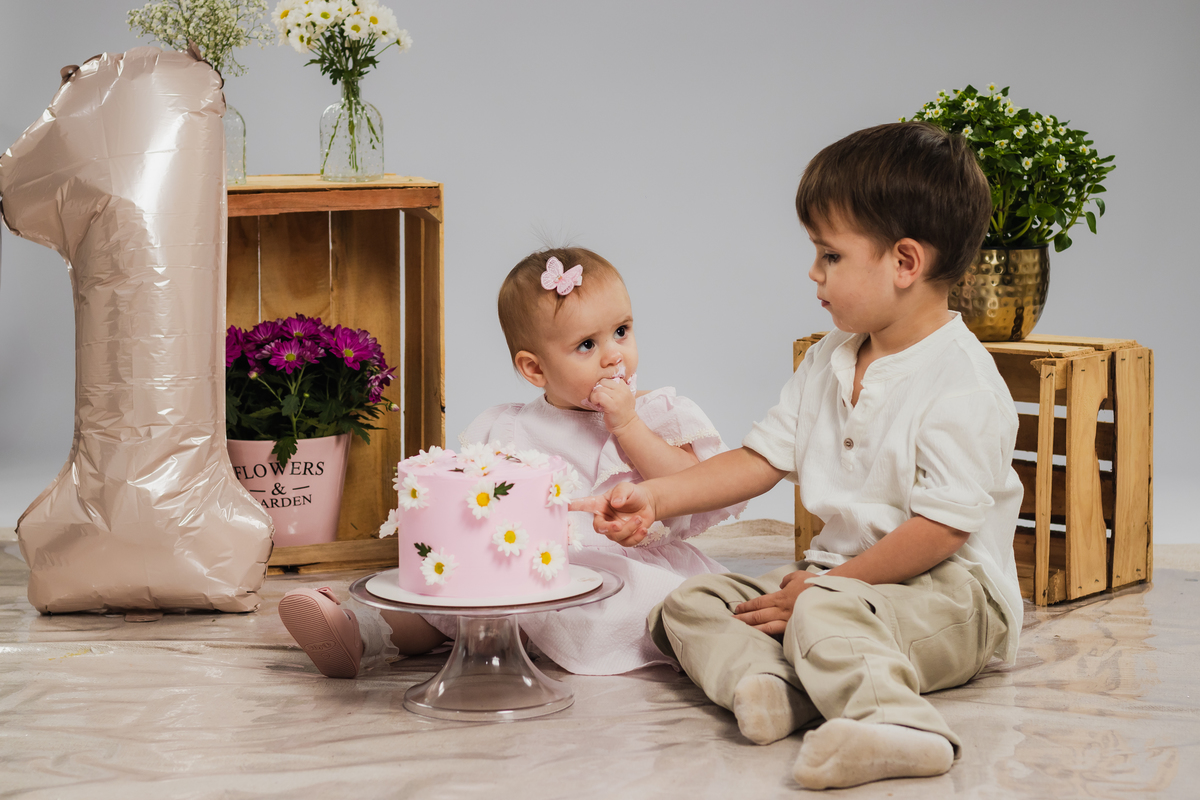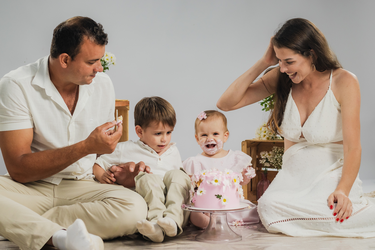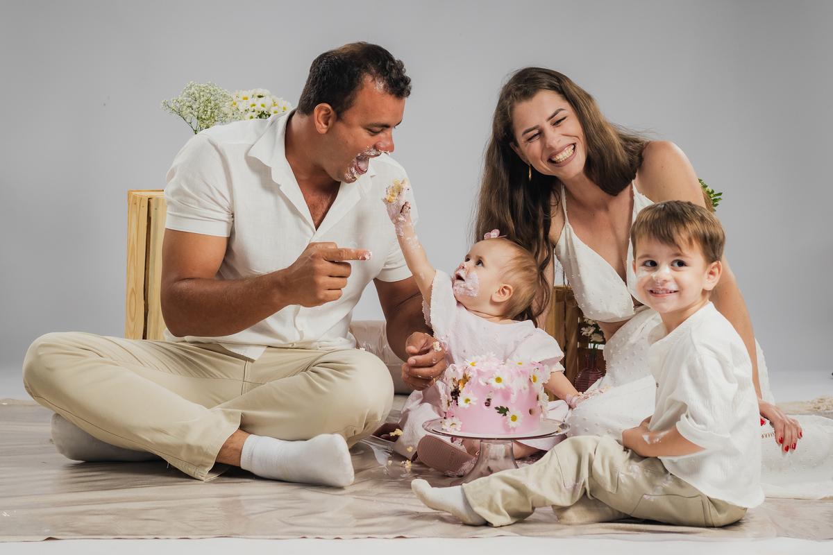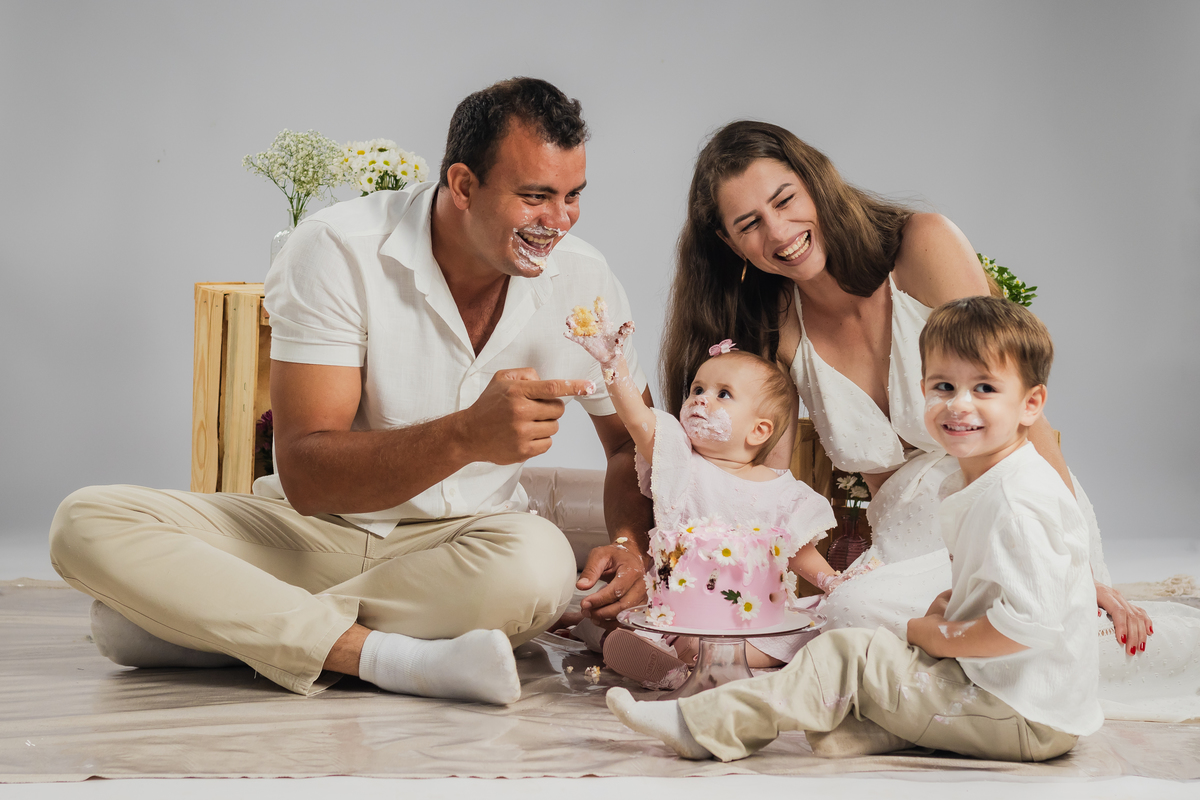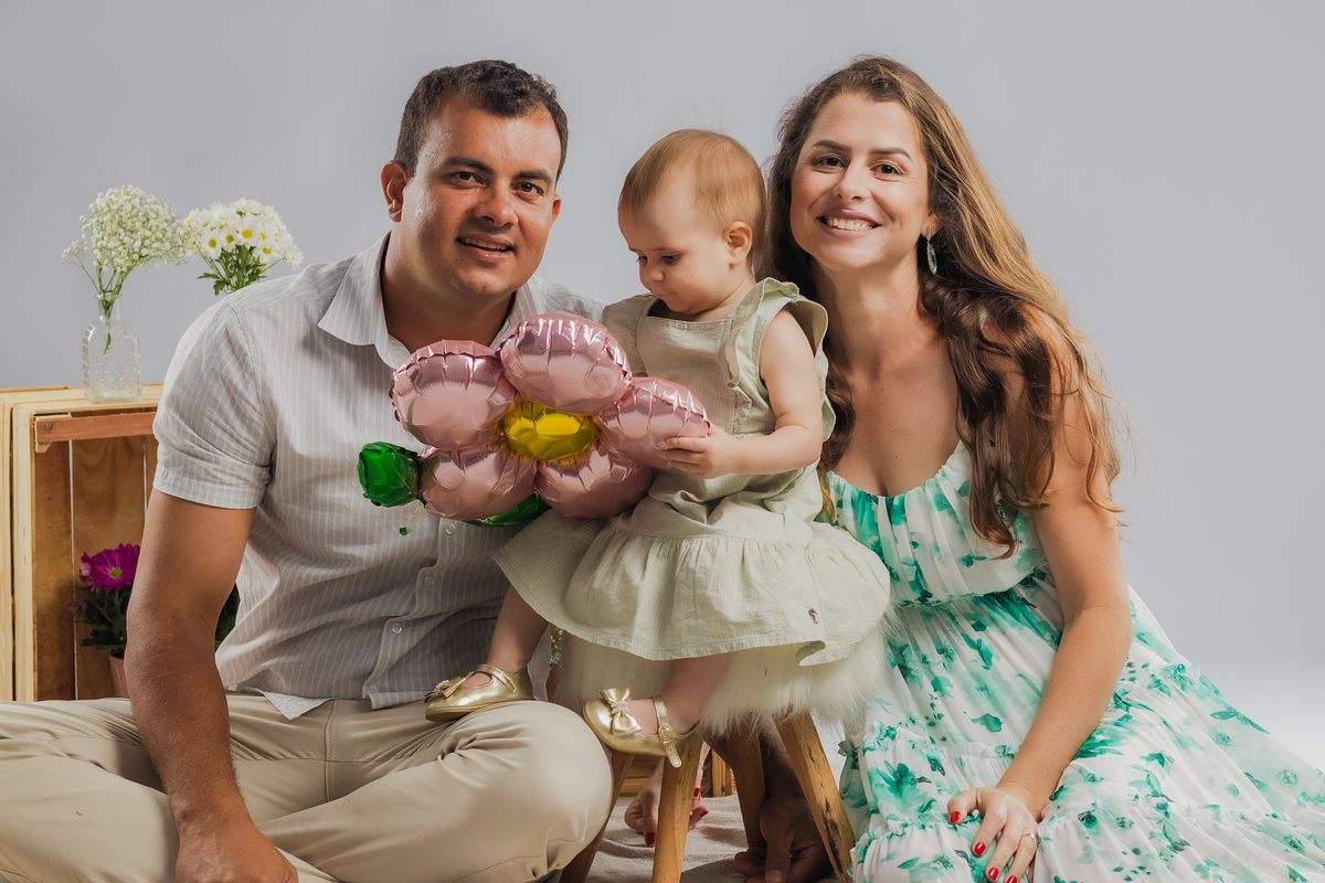 O primeiro aninho da Ana teve muitas flores, bolo e diversão.