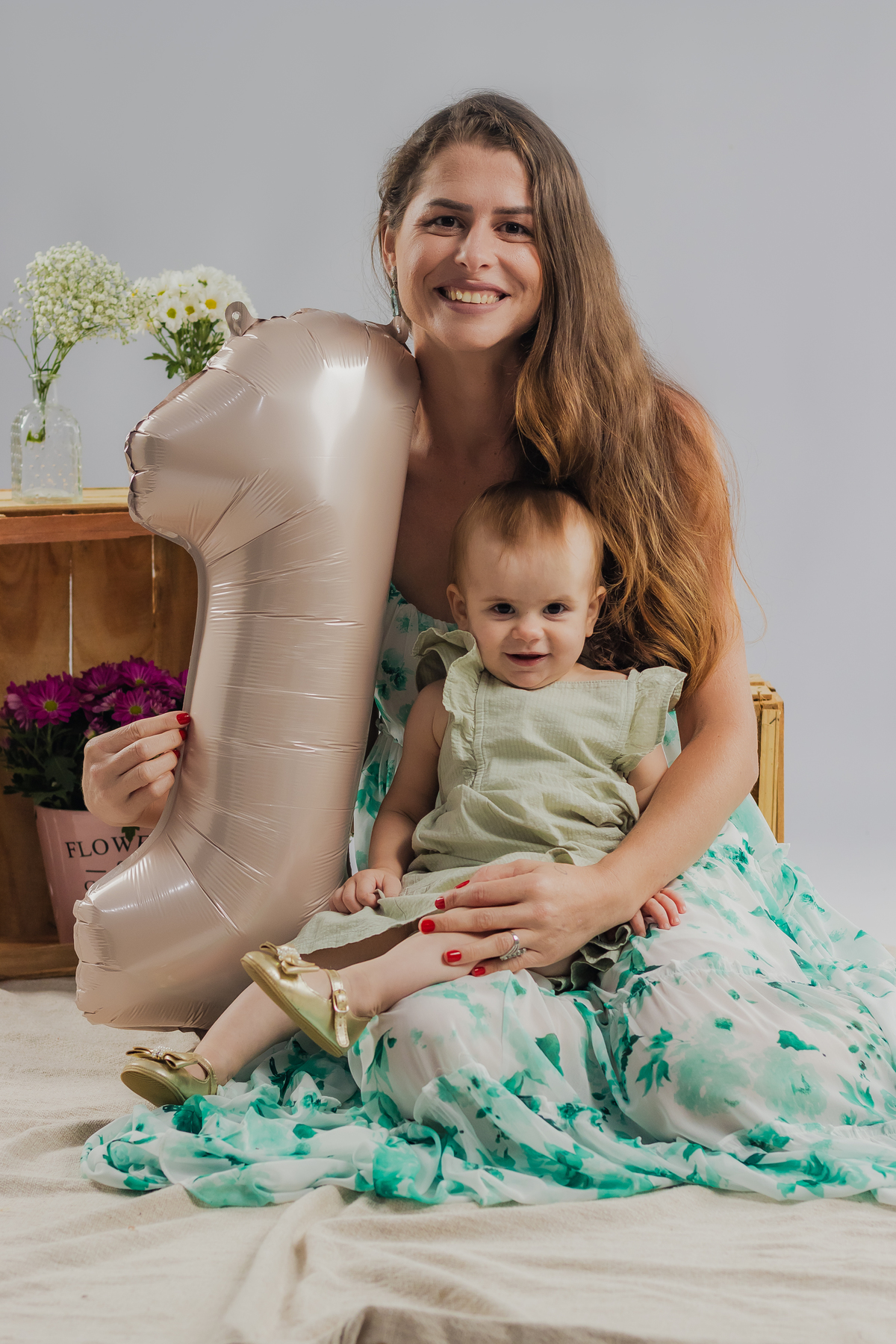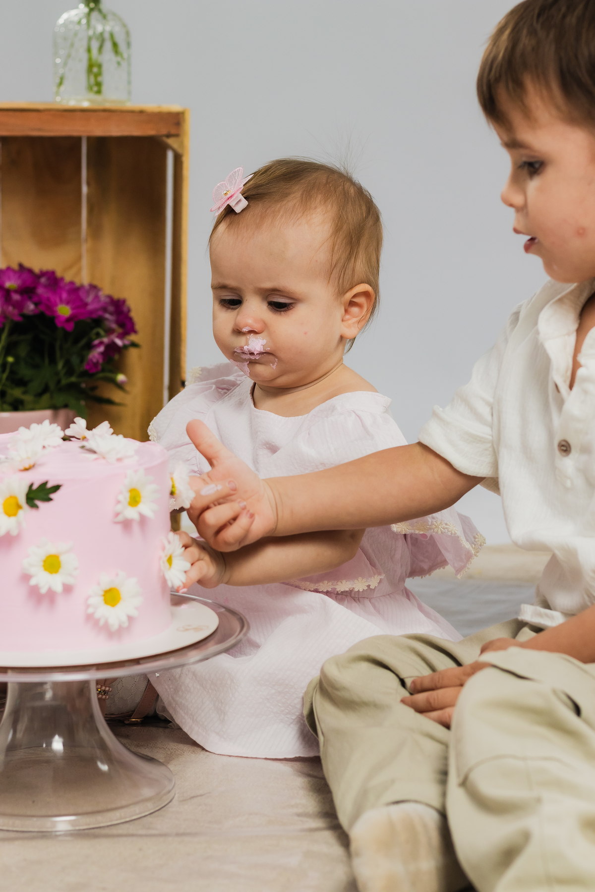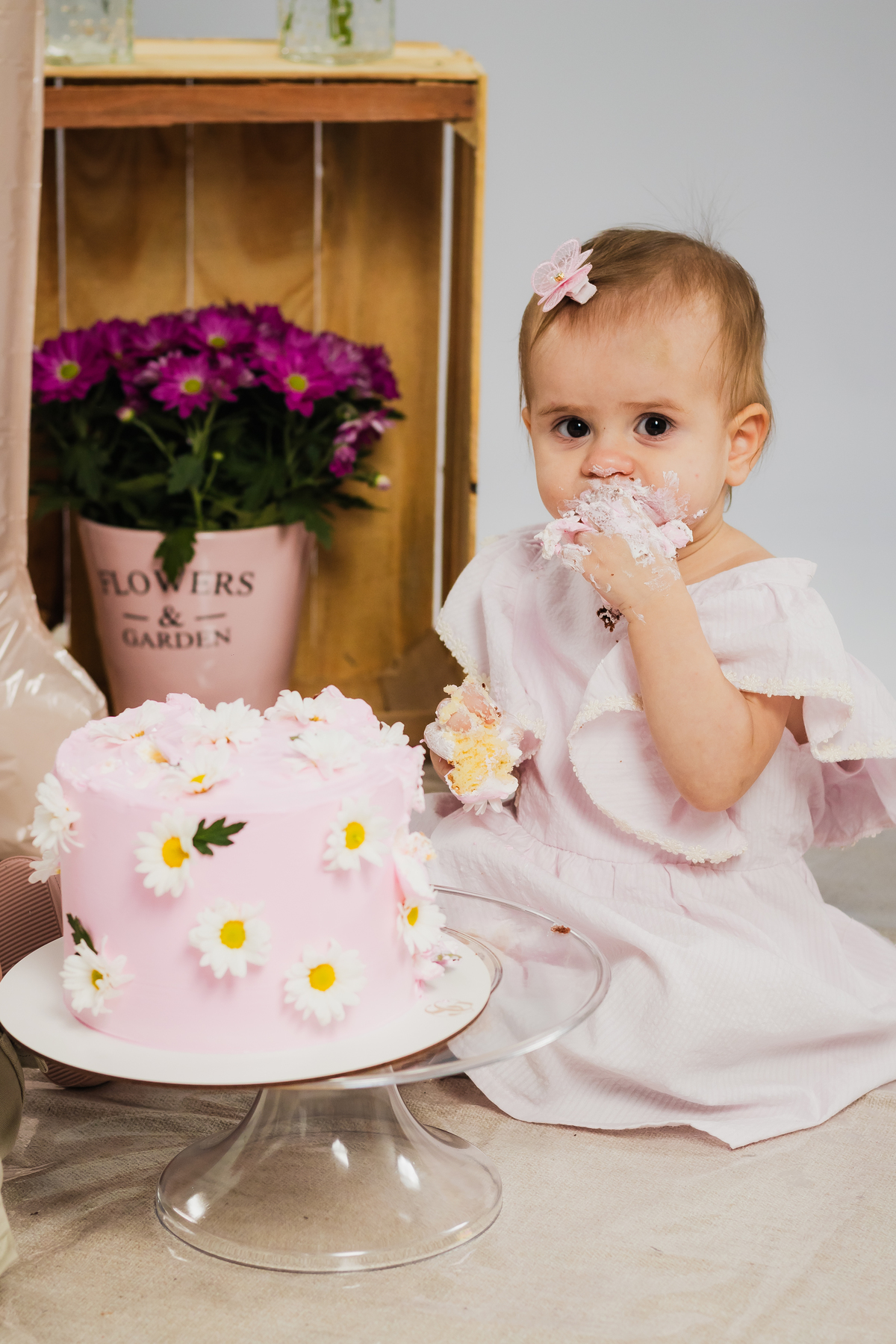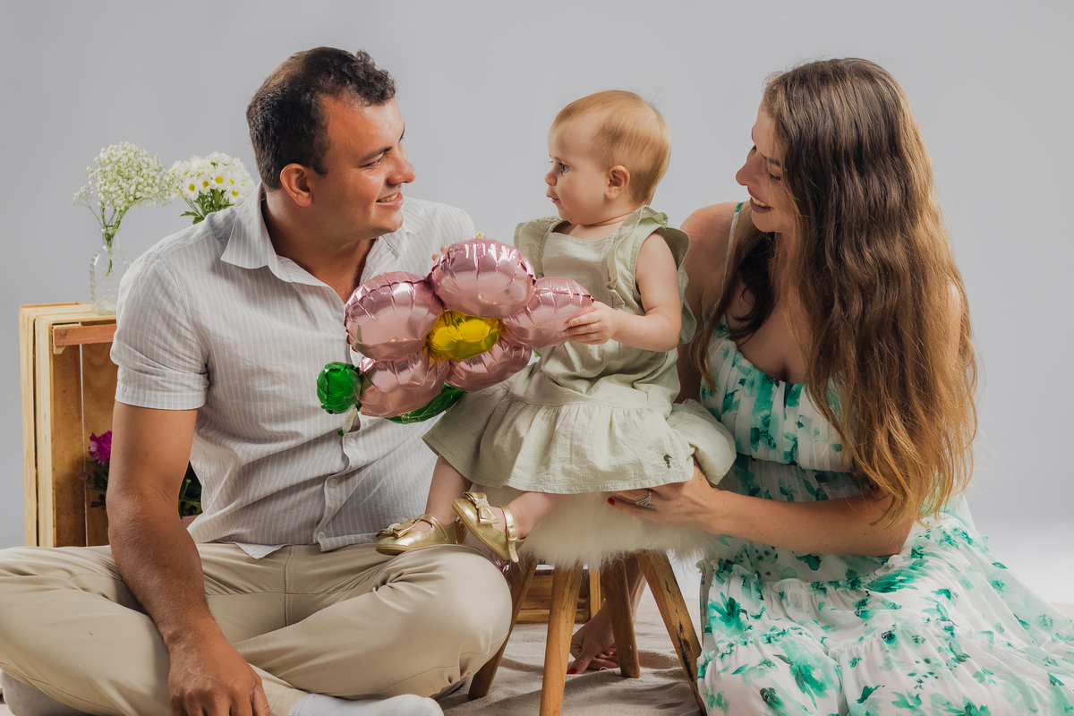 O primeiro aninho da Ana teve muitas flores, bolo e diversão.