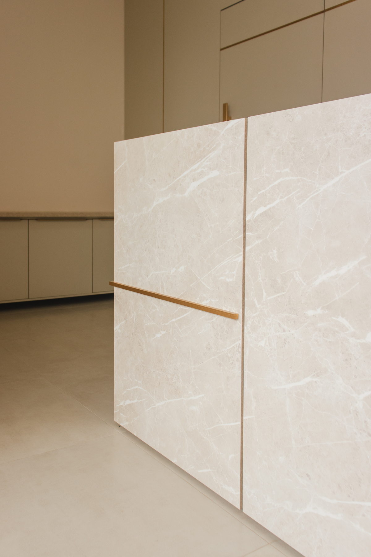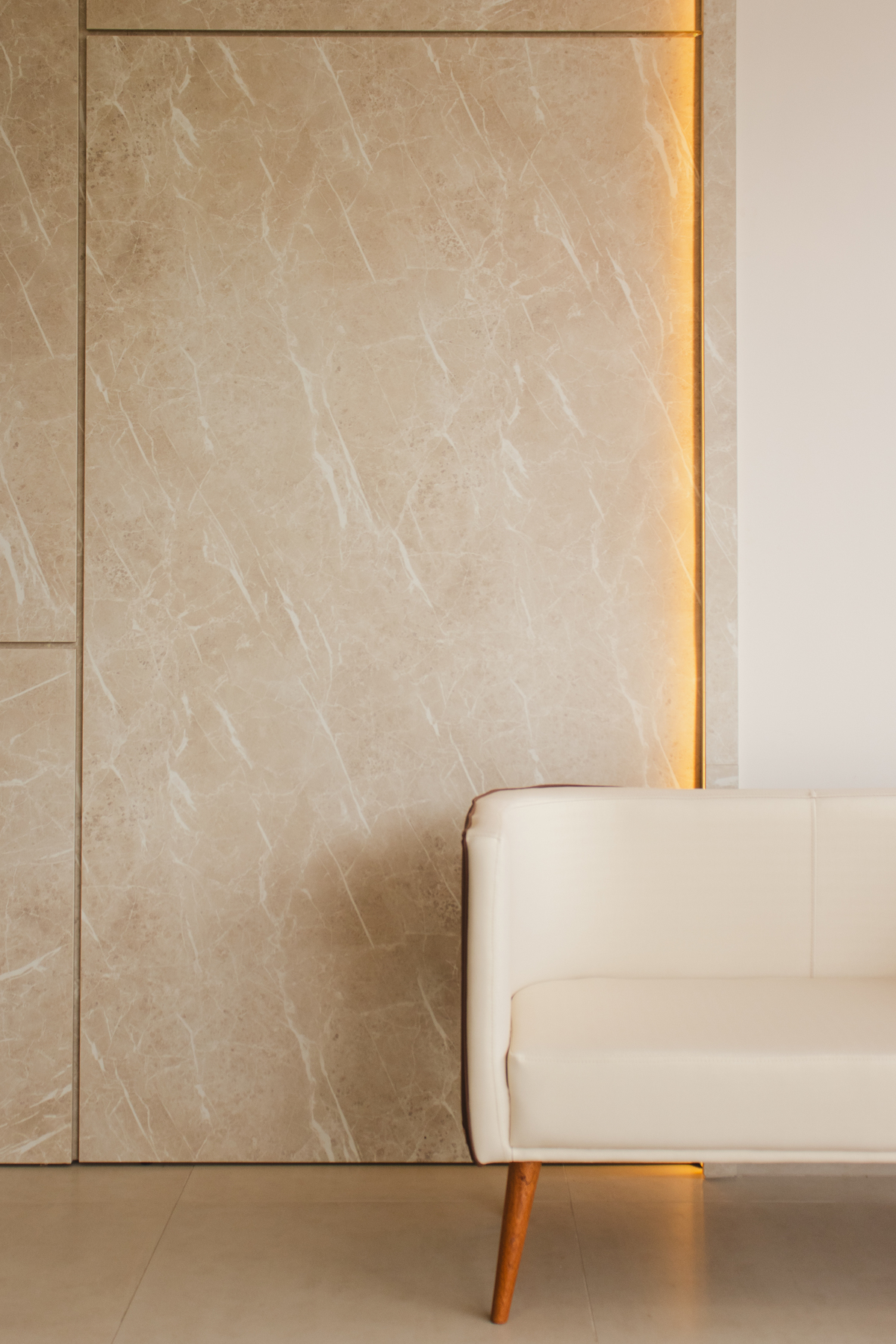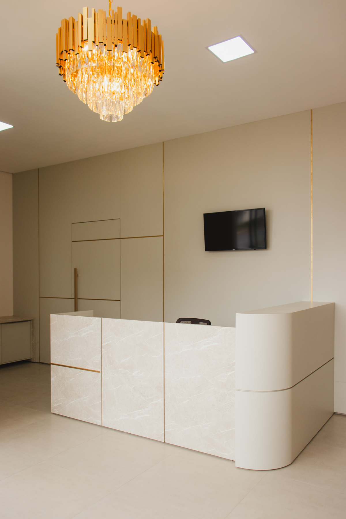 Os móveis da Casa Lisboa têm um talento único: se encaixam perfeitamente em qualquer ambiente, pois são feitos sob medida para aquele espaço. E no laboratório Padrão, não foi diferente. A recepção ganhou vida com móveis em MDF de alta resistência, detalhes dourados discretos e um balcão com acabamento arredondado – um pequeno grande diferencial que mostra a atenção aos detalhes que só a Casa Lisboa oferece.