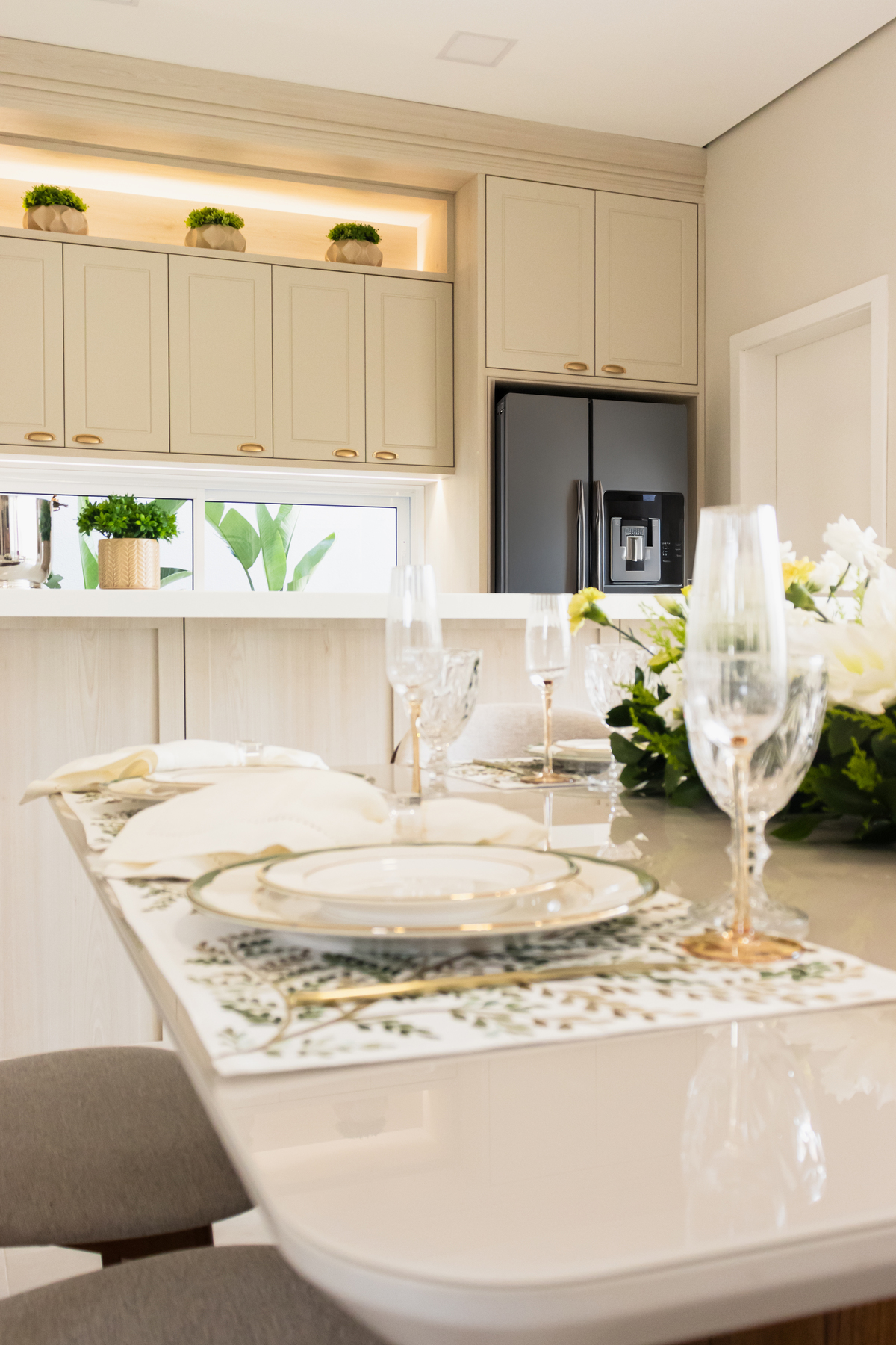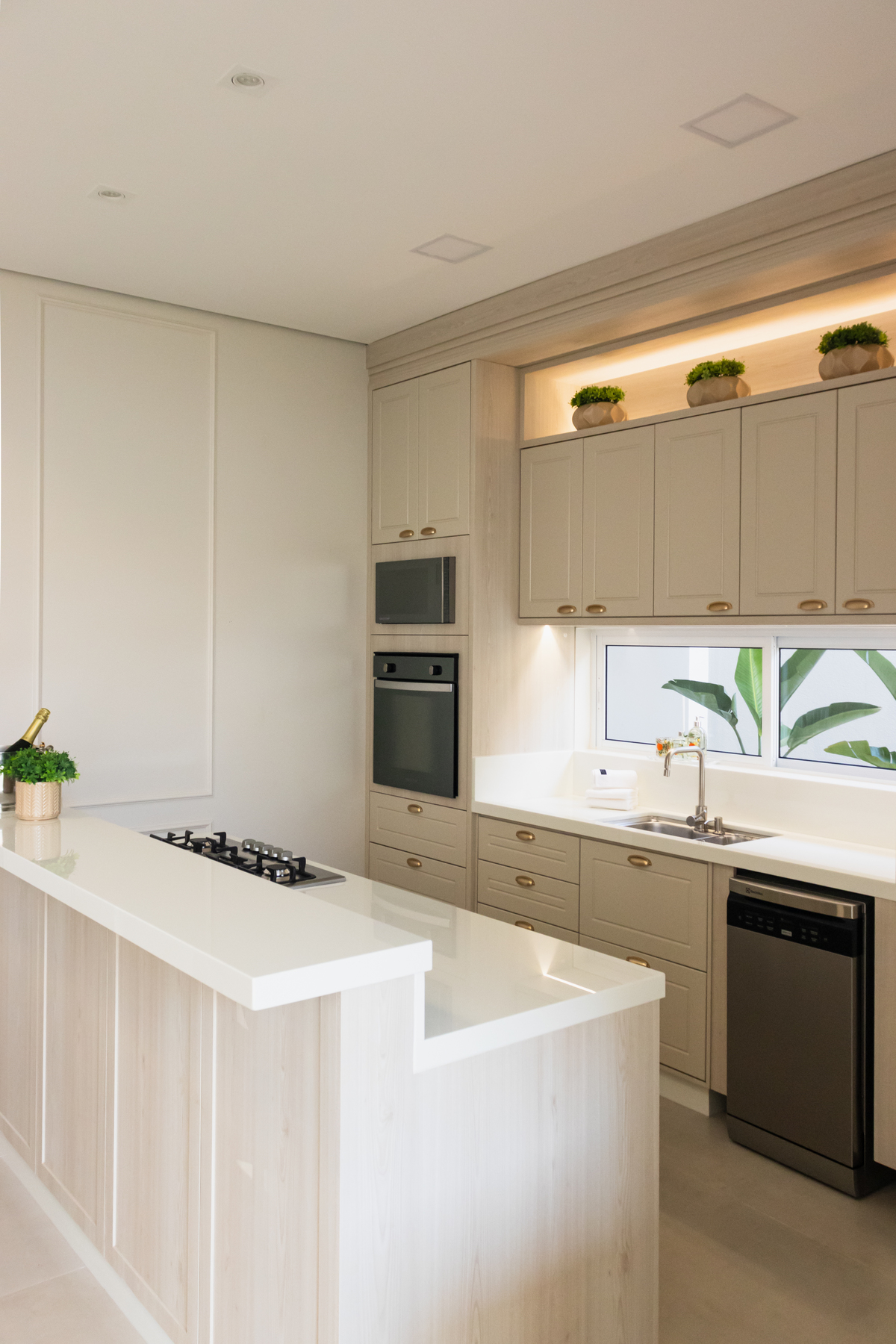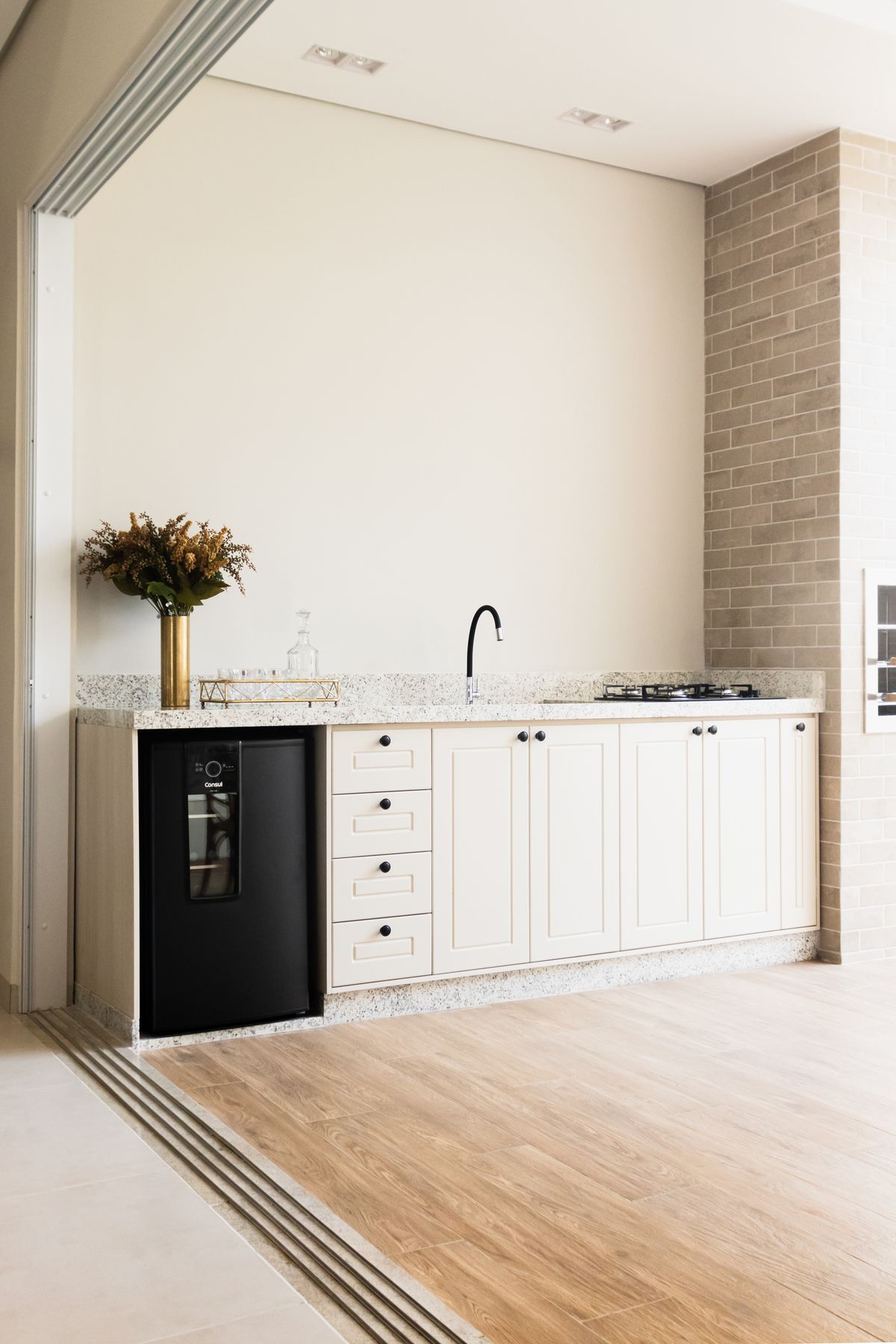 ✔ Integração Perfeita: A cozinha dialoga harmoniosamente com a área gourmet, criando um fluxo natural para quem cozinha e para quem recebe amigos